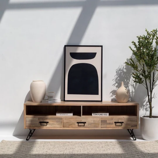 Nismaaya Ryla 3-Drawers Mango Wood TV Unit | Nismaaya Ryla 3-Drawers Mango Wood Console Table