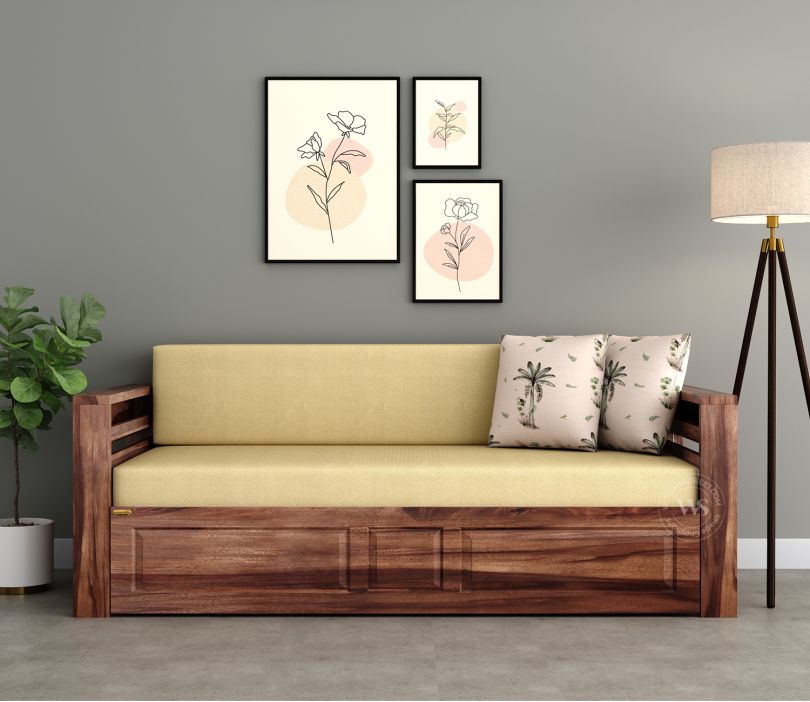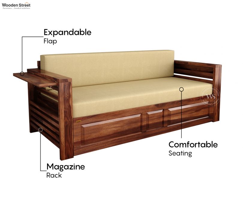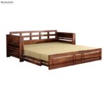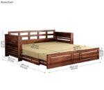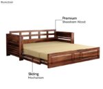 About Material & Finish: Made and crafted with high-quality Sheesham wood, this bed cum sofa is sturdy in nature and offers long-lasting durability. It is firm and also has an armrest in the same product and one more finish option that is available in this Feltro Bed Cum Sofa is a honey finish, making your space look luxurious..
