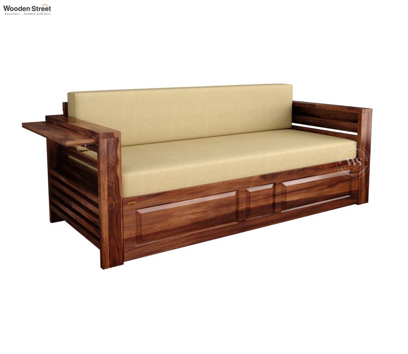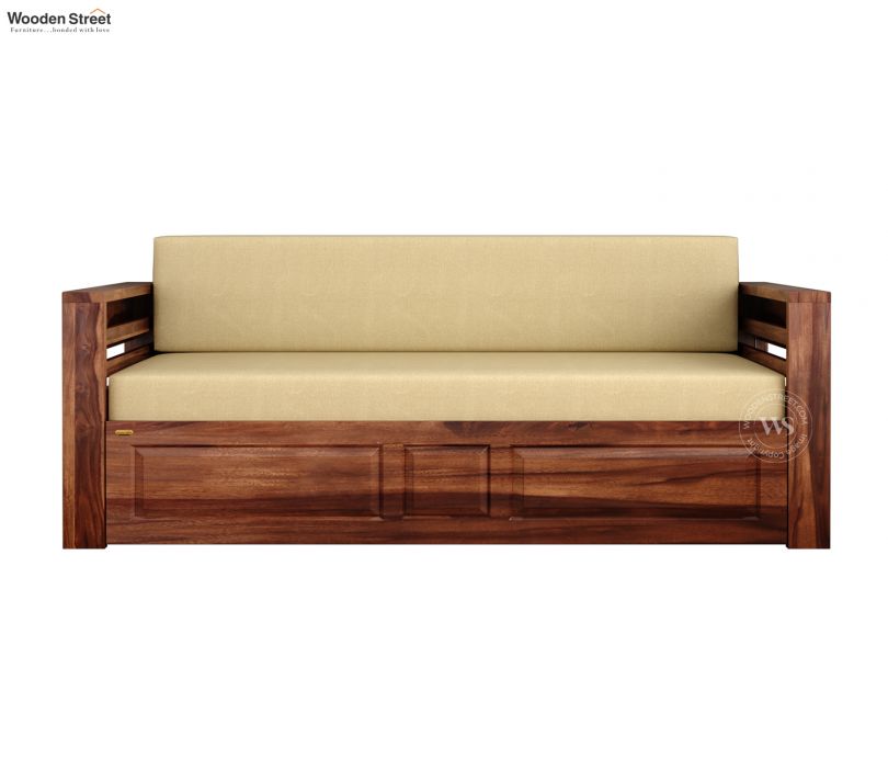 Feltro Sheesham Wood Sofa Bed With Storage (King Size, Honey Irish Cream)