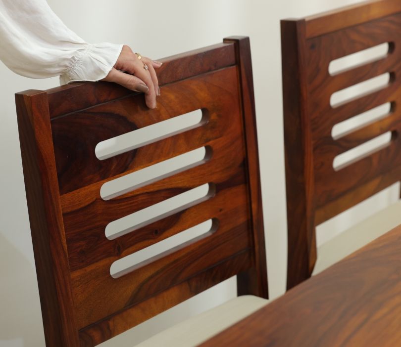 Be the first to review “Janet Premium Sheesham Wood 6 Seater Dining Set with Cushioned Chair (Honey Finish)” Cancel reply