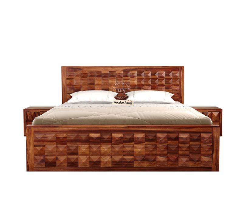 Adolph Sheesham Wood Queen Size Bed With Side Storage (Walnut Finish)